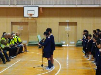 今朝の児童朝会で、「見守りたいのみなさんへの感謝の会」を実施しました。