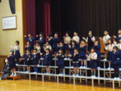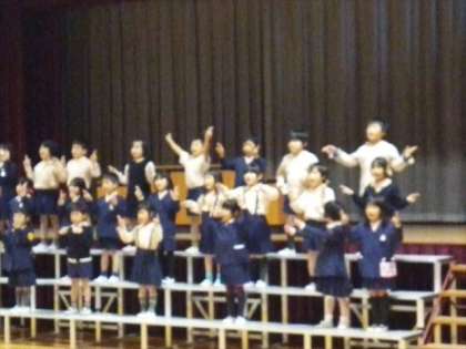 1年生が、入学式の新1年生の歓迎の出し物の練習をしています。みんなお兄さんお姉さんらしくなりました。もう2年生です。