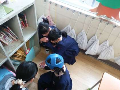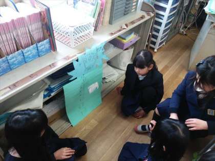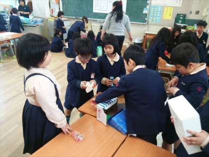 1−2の子どもたちは、4時間目におもちゃ教室であそびました。2年生は2時間連続ですが、優しい子たちです。写真上「びっくりばこ」写真中「パッチンガエル」かなり跳んでます!写真下「ピョンうさぎ」これもうまくいけばジャンプします。