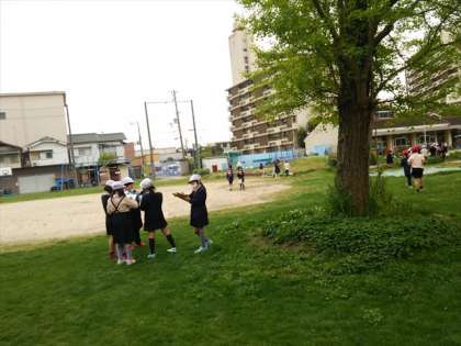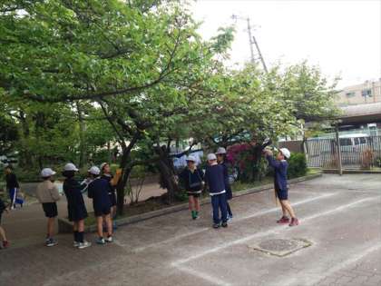3,4年生が、春の自然観察にもと津守小学校にでかけました。