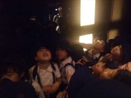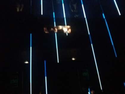 16階から60階までエレベーターに乗りました。エレベーターの中は滑走路のように見える工夫がしてありました。