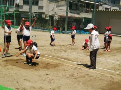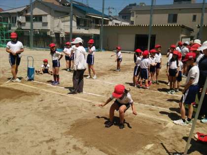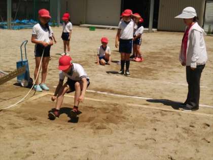写真は立ち幅跳びです。後ろに手をつくとそこから測ることになります。