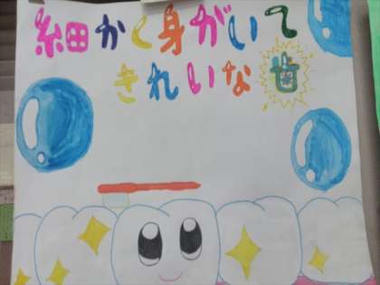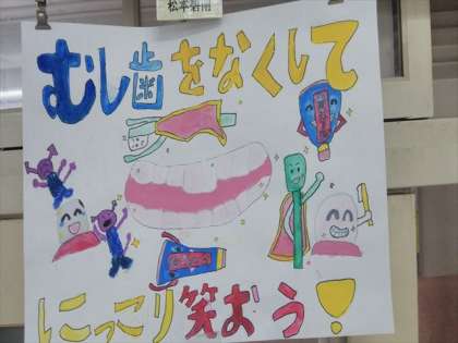 5年生の「歯の健康ポスター」が完成し、掲示されていました。一部をご紹介します。