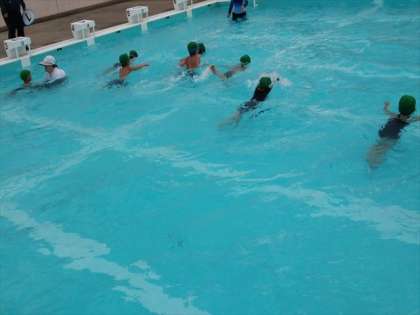 「水になれる、もぐる、浮く」、のいろいろな動きができるように少しずつ練習しています。だんだん動きが大きくなってきているのがよくわかります。