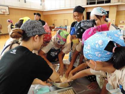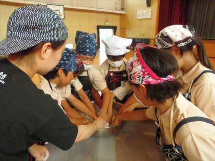 6年生が、ラーメン店の「一風堂」さんをゲストティーチャーにお迎えして、「ラーメン職人体験学習」を行いました。清潔第一です。手をきれいに洗った後、まず、ぎょうざの皮から作りました。