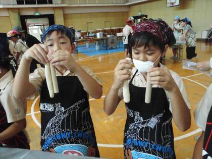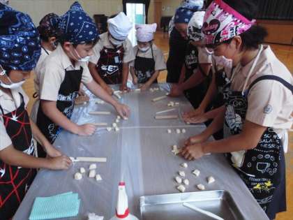 細長く伸ばしていって、小分けにしていきます。そして、広げていくと・・・