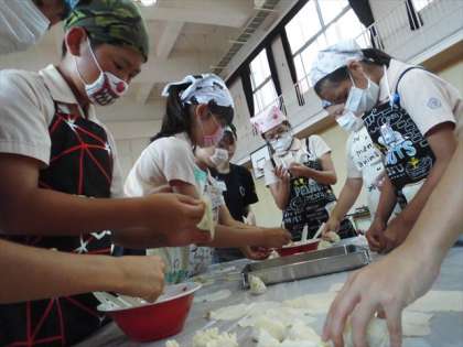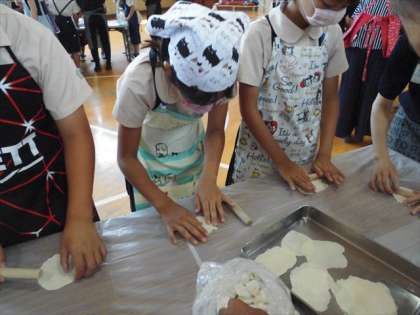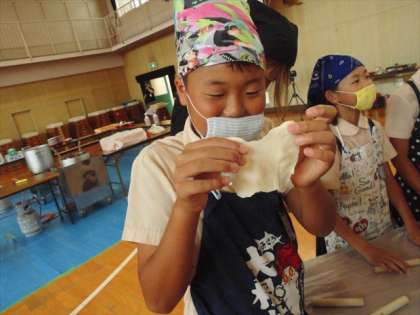 うすくうすーくのばして、ぎょうざの皮ができました。あとは具材を包んでいきます。