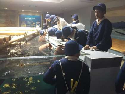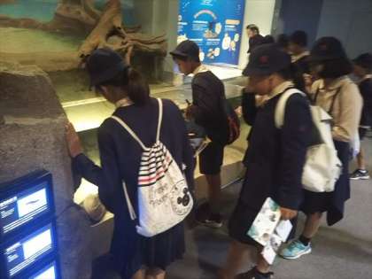 宮島水族館は、グループ活動ですが、アシカショーは、みんなで見学しました。梅南津守小から一人、アシカの曲芸にチャレンジしました。