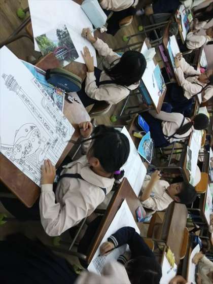 住吉大社のたいこ橋、ふぐのずぼらやなど有名な場所が楽しく描かれています。
