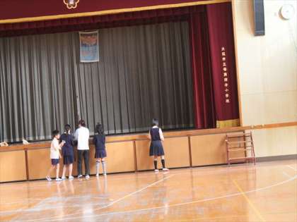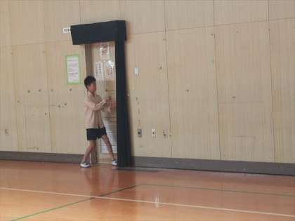 今朝の児童集会は「宝さがし」でした。集会委員会の児童が、折りたたんだ「あたり」と「ハズレ」の紙をテープで講堂の至るところに貼りました。