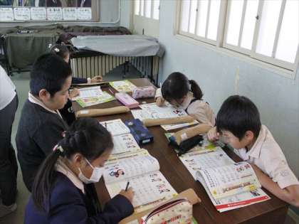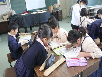 楽譜に階名(ドレミ)を一生懸命書いています。