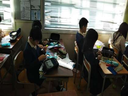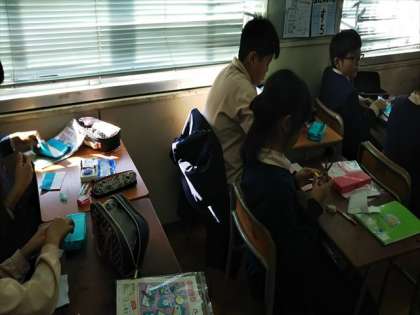 フェルトで、今までに学習した縫い方や玉結び玉どめを使って製作します。