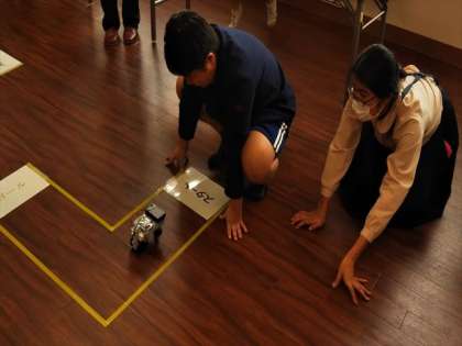 自分のグループのプログラミングを発表してから、実際にロボットカーを走らせます。成功すれば、大きな拍手が出ますが、うまくいかなくても、拍手が起こります。それぞれのグループの苦心がわかるからでしょう。そこがすばらしいのです。