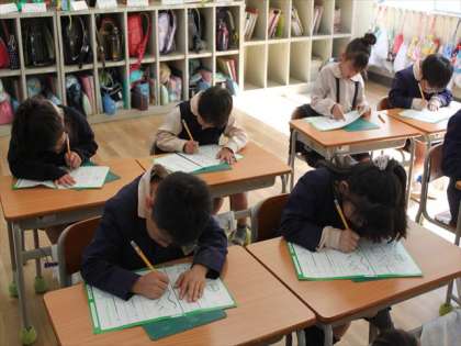 安全に、きちんと使えるように学習しています。直線や曲線にそってカッターを上手に動かすこつを練習しました。基本はバッチリできたようです。