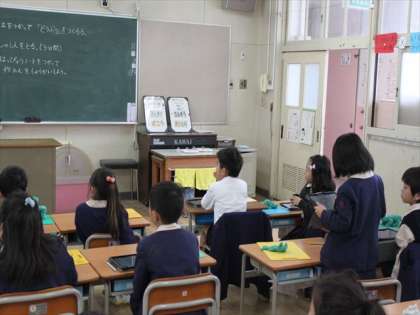 子どもたちは、工夫したところ、苦労したところをみんなで共有しながら、友だちの良さをわかったり、自分の作品作りに活かそうとしていました。