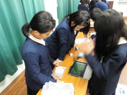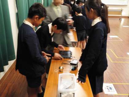 6年のプログラミング学習の様子です。災害時にロボットカーで救援物資を届けるという設定でした。
