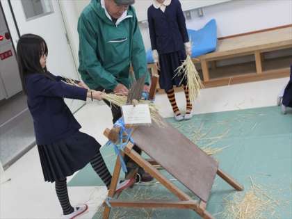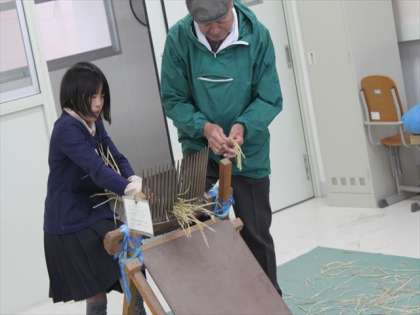 脱穀には、むかしの農具である「千歯こき」を使いました。