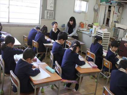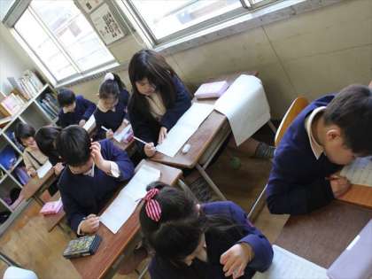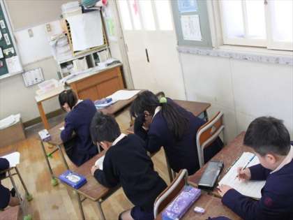 1年生の教室です。さっそく冬休みの宿題の答え合わせが始まっていました。