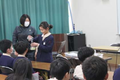 6年生が、学校薬剤師の先生をお招きして、薬の正しい使い方について学びました。