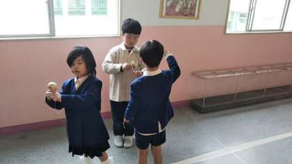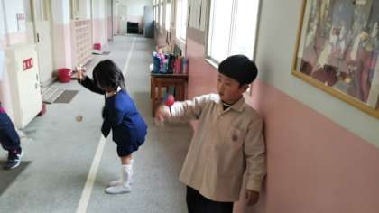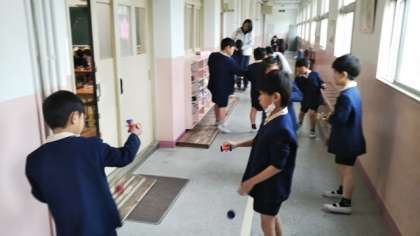 これまで遊んだ経験のある子もない子も、夢中になってけん玉遊びをしています。