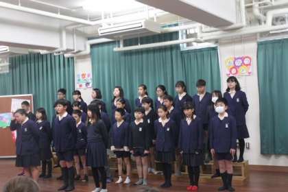 6年生です。総合で、「ラスト参観〜支えてくれた人たちへ〜」を多目的室 で発表しました。家族への感謝の言葉や思い出を気持ちをこめて伝えました。