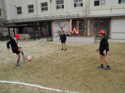 セレッソ大阪のコーチのみなさんが来校し、サッカーの出前授業がありました。