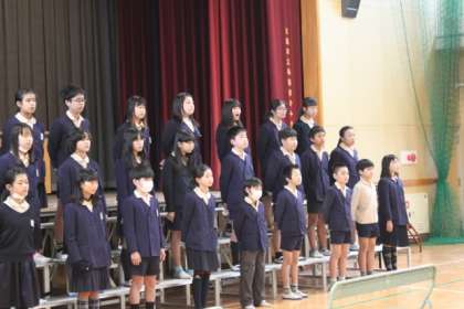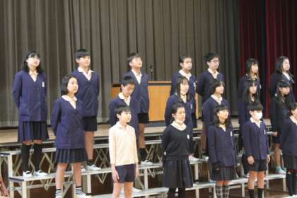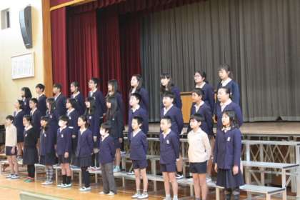 6年生の卒業式の練習の様子です。卒業式では、卒業生は主に2曲歌います。その1つは「いきものがかり」の「YELL エール」を歌います。