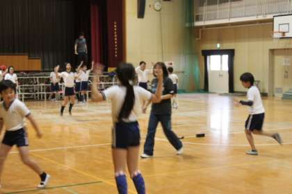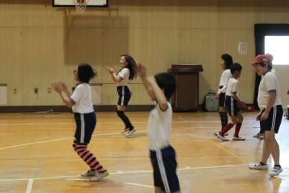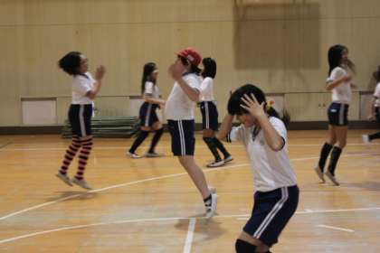 最後には、初めに教えていただいた、上半身の動きと足のリズムを合わせて音楽に合わせて動きました。子どもたちも笑顔いっぱいで「楽しかった!」と語ってくれました。