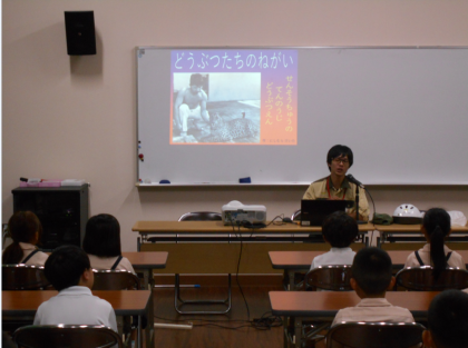 天王寺動物園の職員の方から、動物園の歴史や戦時中の様子について詳しくお話をして頂きました。実際に動物園で起きたハラさんとヒョウの悲劇のお話の最後に、「私たち人間が幸せでないと動物も幸せになれない」という強いメッセージを受け取りました。これからも平和の大切さについてしっかりと学んでいきます。