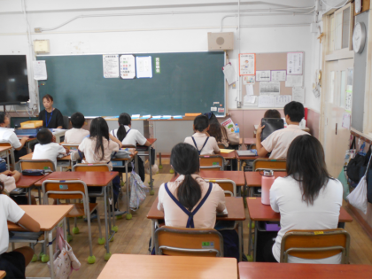 放送朝会では、校長先生と先生からのお話がありました。校長先生から、「国際識字デー」に関するお話があり、「字を学び、字を理解することによって平和を実現する」という大切なメッセージを児童たちに伝える場面がありました。校長先生のお話を児童たちもしっかりと聞いていました。