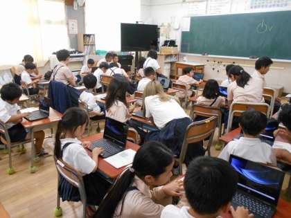 ログインの仕方では、6年生が1年生にパスワードの入れ方を優しく丁寧に教えていたり、毎日使う機能についてどこを押せばいいのか、どのように操作するといいのかを教えていたりしました。優しく1年生に接している6年生はとても素敵でした。