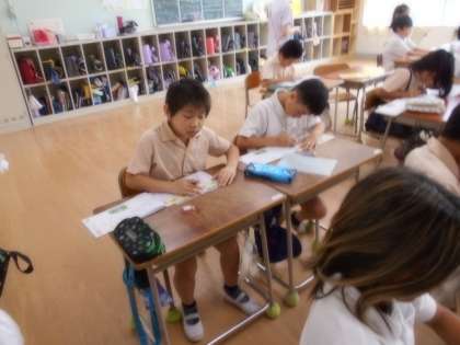 漢字の意味や使い方を考え、丁寧に書いています。