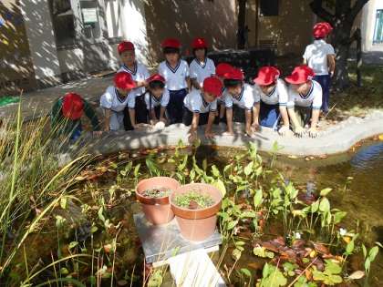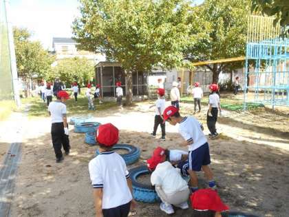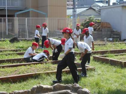1年生の生活科の学習で、元松之宮小学校へ生き物探しに行きました。