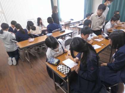 10月21日(火)3時間目に出前授業がありました。今回は生野区のサンフェイスの方々にゲストティーチャーとして来校していただきました。アニメ『ワンピース』のキャラクターの話を交えたり、グループで疑似体験の活動をしたり、発達障がいについてわかりやすく教えていただきました。友だちと気持ちよく関わり過ごしていくため、友だちを理解して助け合うことが大切だと気付くことができました。