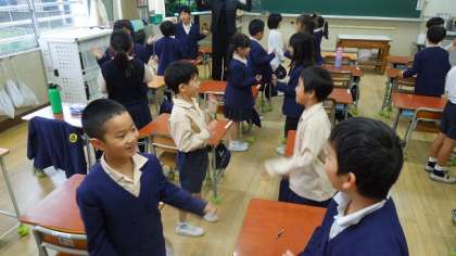 まずは英語でのあいさつの仕方を教えていただきました。次にHow are youの歌を歌ったり、ゲームをしたりしました。どの子も楽しそうに英語を学ぶことができました。