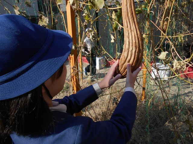校庭にある葉牡丹やビオラ、梅の木や糸瓜の冬の様子を写真におさめました。