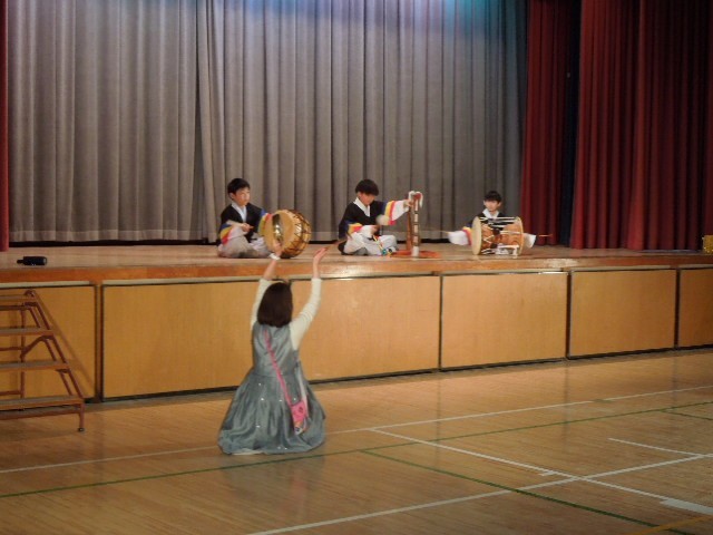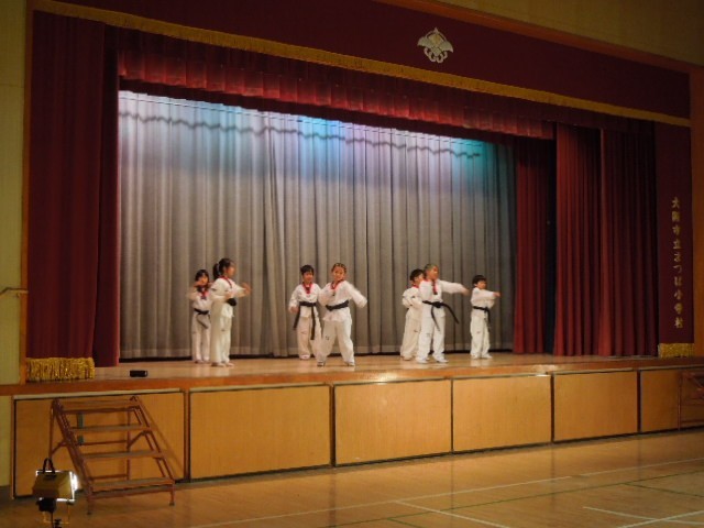 ウリホランイ学級は、テッコンドー体操とサムルノリ、カルチュムを発表しました。練習の成果を発揮していました。