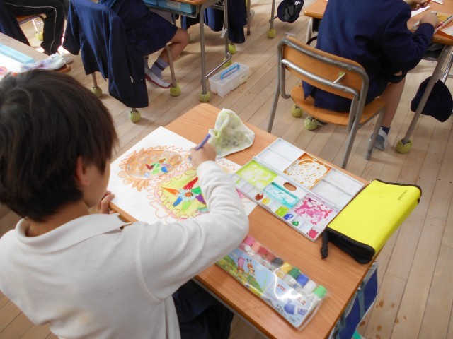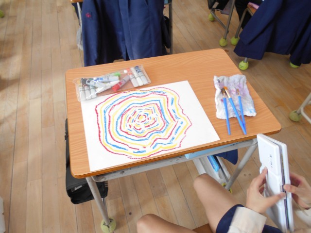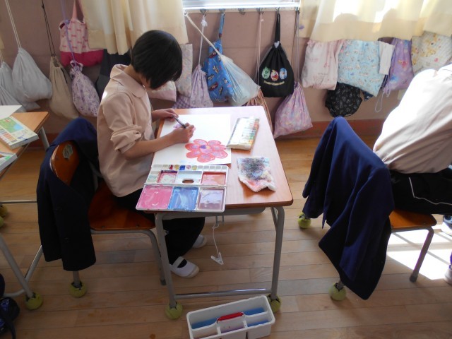 「この花はクレパスだけで描こう!」「この部分は絵の具を使おう!」と