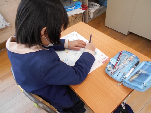 3年生に向けて、「鉛筆の持ち方」「姿勢」「筆順」の意識をして、丁寧に文字を書く練習をしています。