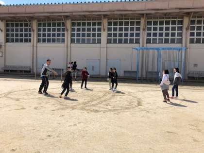 楽しく元気に運動場で先生と子どもたちとで遊んでいました。