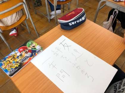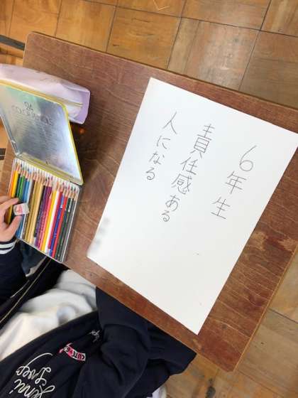 子どもたちは、悩みながらも楽しそうに自分の決意を書いていました。