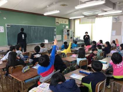 先日、3年生になって初めてのC-NET(外国語活動)がありました。新しく来られたパウエル先生と、自己紹介を通じながらとても楽しくにぎやかな授業になりました!