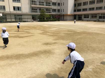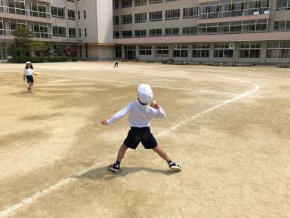 今日はソフトボール投げの練習をしました。遠くに投げられるよう、校舎の時計に届くくらい!!といってみんなでボールをなげました。踏み込みの足や、体全体の使い方を意識して投げることができました。本番が楽しみです!