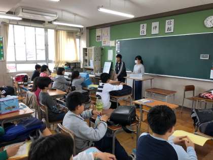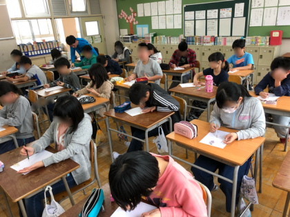 ※写真3 終わりの会で日直が1分間スピーチをしている様子