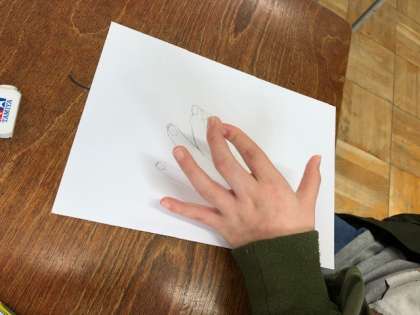 自分の手をじっくりと観察して、しわまで丁寧に描いていました。