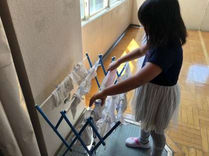 そうじが終わった時間に、かたづけの様子を見ていると、みんなが使った雑巾をきれいに並べている子が!!誰に言われたわけでなく、自分から進んで行動していました。