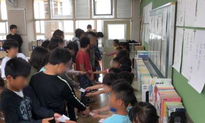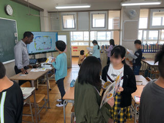今日の1時間目、1年生のみんなが6年生の教室まで来てくれました。