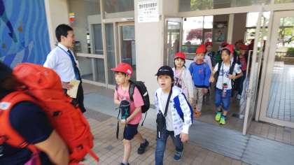 出発式を終えて、5年生が元気に出発しました(#^^#)