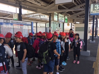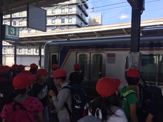 さあ、出発です。元気いっぱい電車に乗り込む子どもたちです。