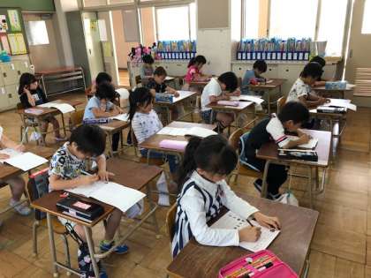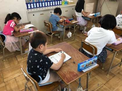 今日は算数の「なんばんめ」のテストをしました。「前から数えると・・・」「右から数えると・・・」と、一生懸命考えて問題を解きました。